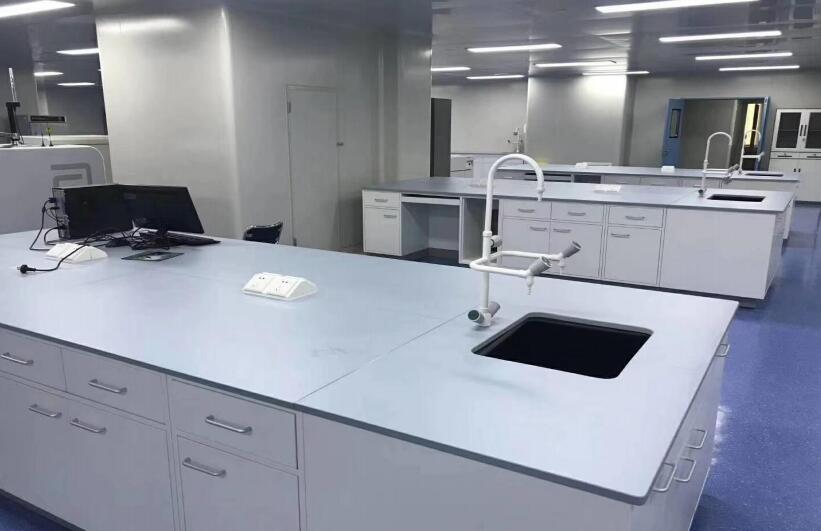 采用厚度为20mm浅蓝色一体高温烧制成型实验室工业陶瓷台面,耐强腐蚀,耐1400