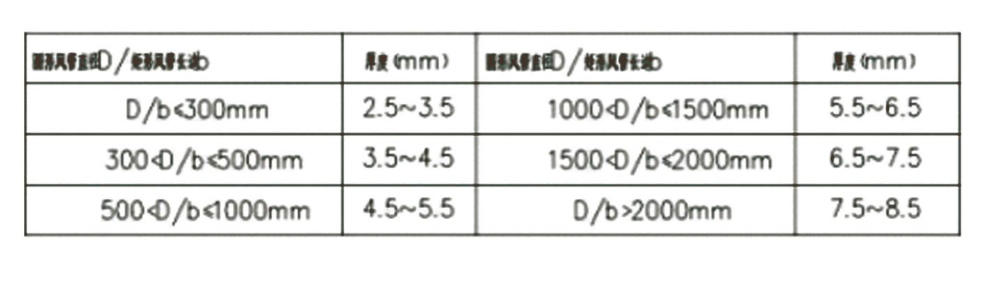 (4)风管采用PP风管,厚度参照《通风与空调工程施工质量验收规范》GB50243-2002