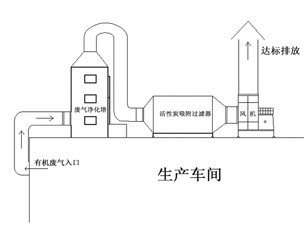 1.采用填料塔对废气进行净化,适合于连续和间歇排放废气的治理;